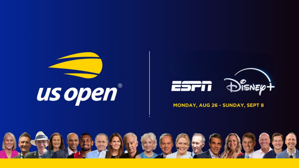 ESPN platforms will present exclusive coverage of the US Open beginning Monday, August 26, at noon ET on ESPN and ESPN on Disney+. More than 260 hours of coverage will air on ESPN and ESPN2, with all the action also available on ESPN on Disney+, including full access to all matches and courts.